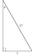 You are given two out of three pieces of information for sin, so \[ \begin{align} \sin \theta &= \frac{\text{opposite}}{\text{hypotenuse}} = \frac{5}{17} \\ \end{align} \ \] and using the sin-1 function on your calculator gives \[ \begin{align} \theta &= 34^o 12'\\ \end{align} \ \]